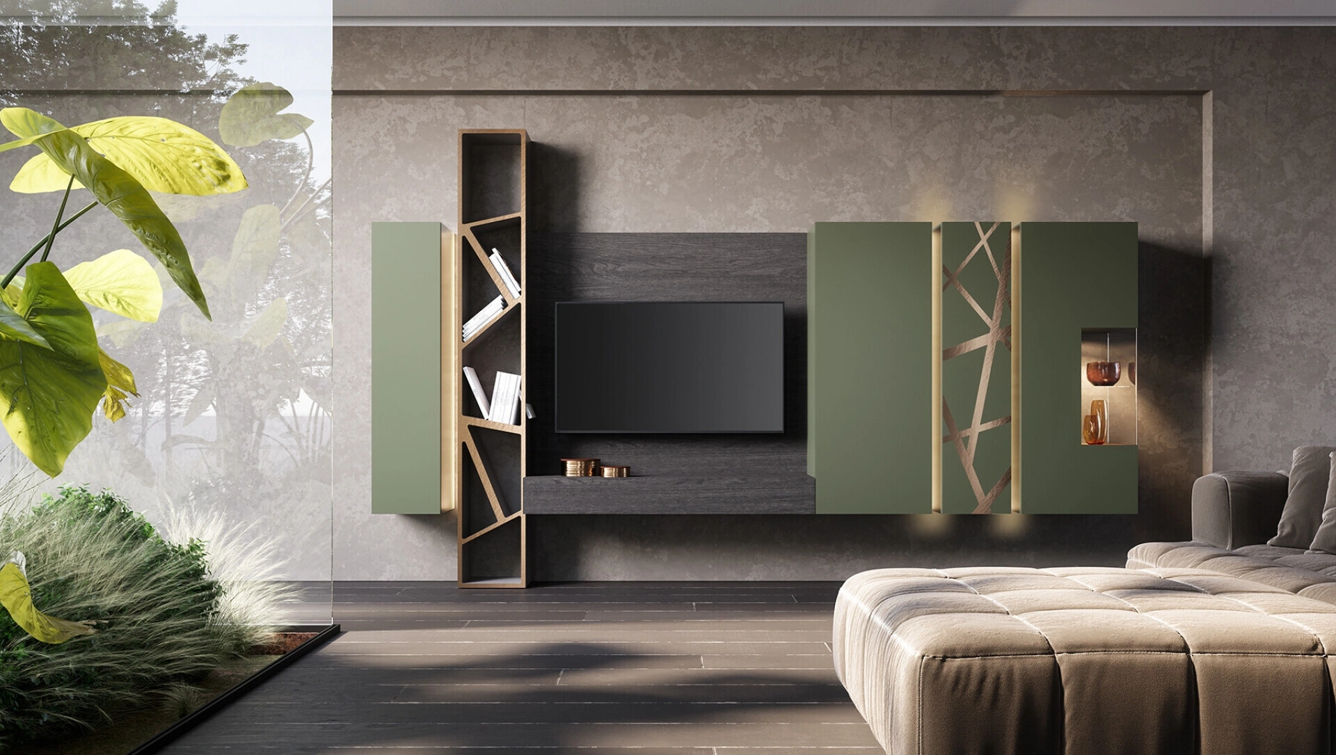 La Parete Attrezzata Soggiorno Verde Prussia di Voltan diventa presenza caratterizzante in stanze di ogni tipo grazie ai suoi elementi modulari e alla possibilità di scegliere finiture, materiali, tonalità, forme e molto altro. Siamo rivenditori di Arredamento Casa in laccato opaco delle migliori marche: contattaci e ottieni informazioni! Studiando le più attuali e particolari problematiche abitative, selezioniamo solo le più esclusive e interessanti soluzioni d’arredo in commercio, realizzabili su misura in base alle più personali richieste. Le Pareti Attrezzate moderne permettono di ricreare diverse atmosfere nel living, liberando spazio e sfruttando bene ogni angolo.